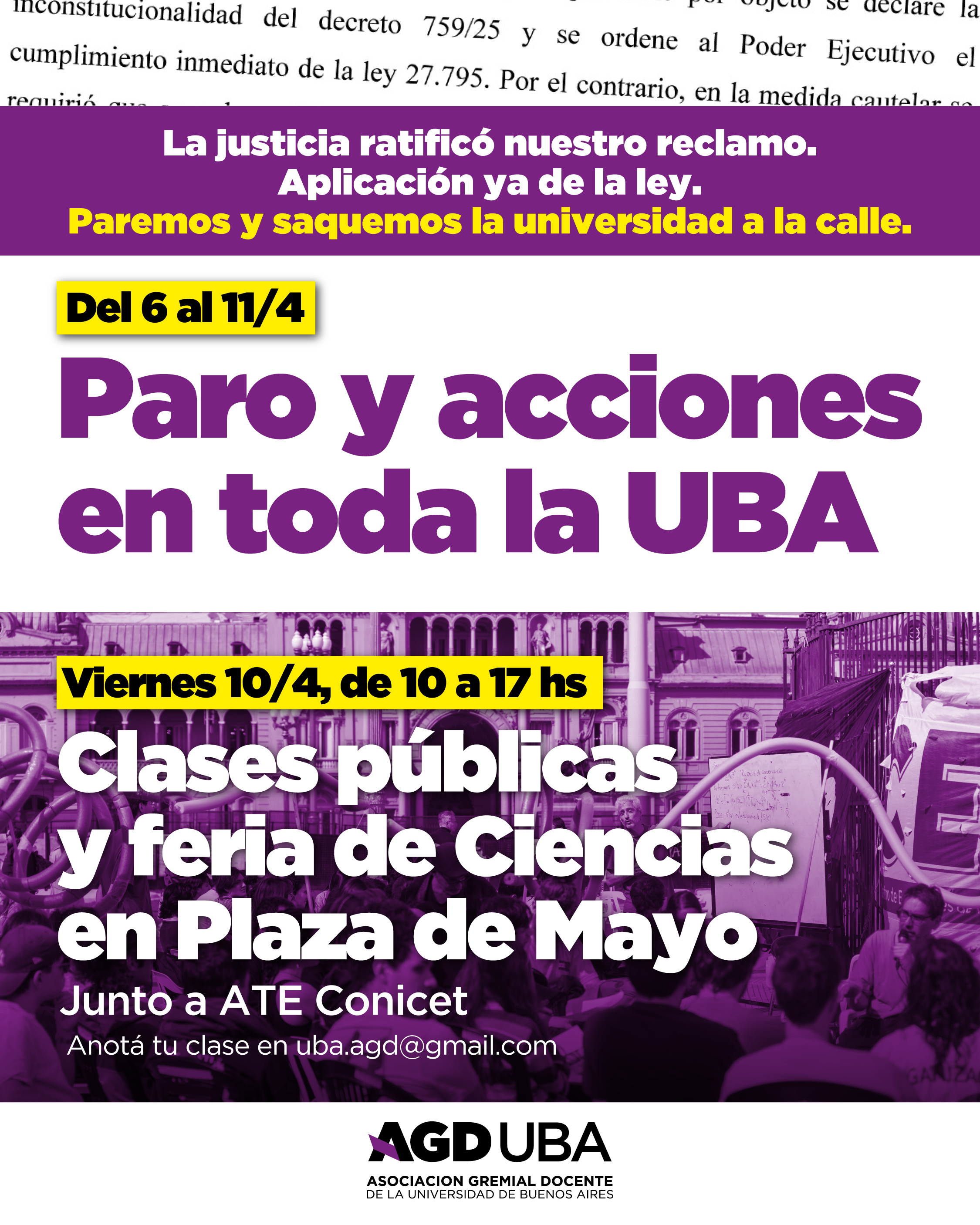 ¡Continuamos el plan de lucha! Del 6 al 11/4 paro y acciones en toda la UBA. El 10 a Plaza de Mayo