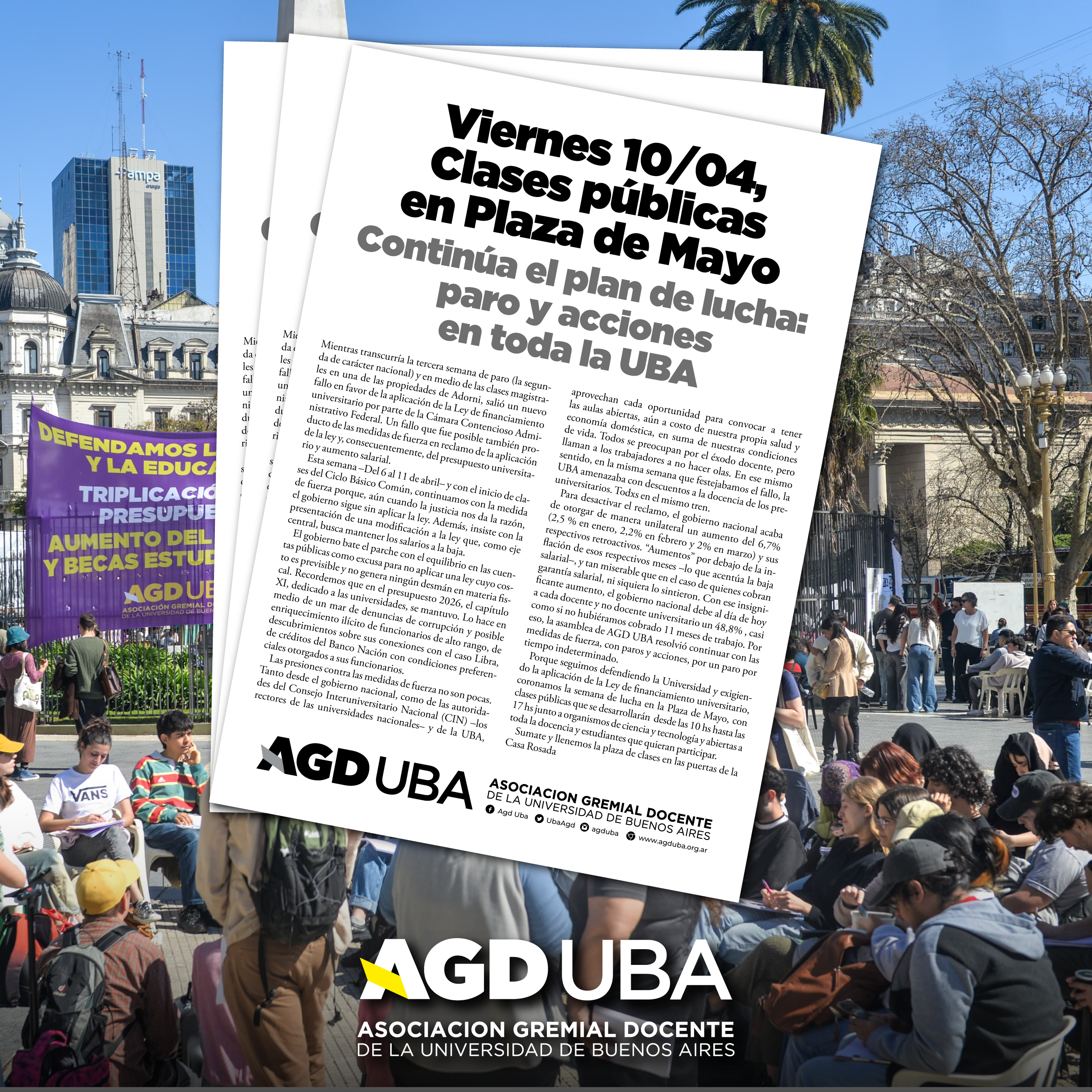 La justicia ratificó nuestro reclamo. Aplicación ya de la Ley de Financiamiento Universitario Paremos y saquemos la universidad a la calle. Del 6 al 11/4, Paro y acciones en toda la UBA Viernes 10/4, de 10 a 17 hs., Clases públicas y feria de ciencias en Plaza de Mayo junto a ATE Conicet Anotá tu […]