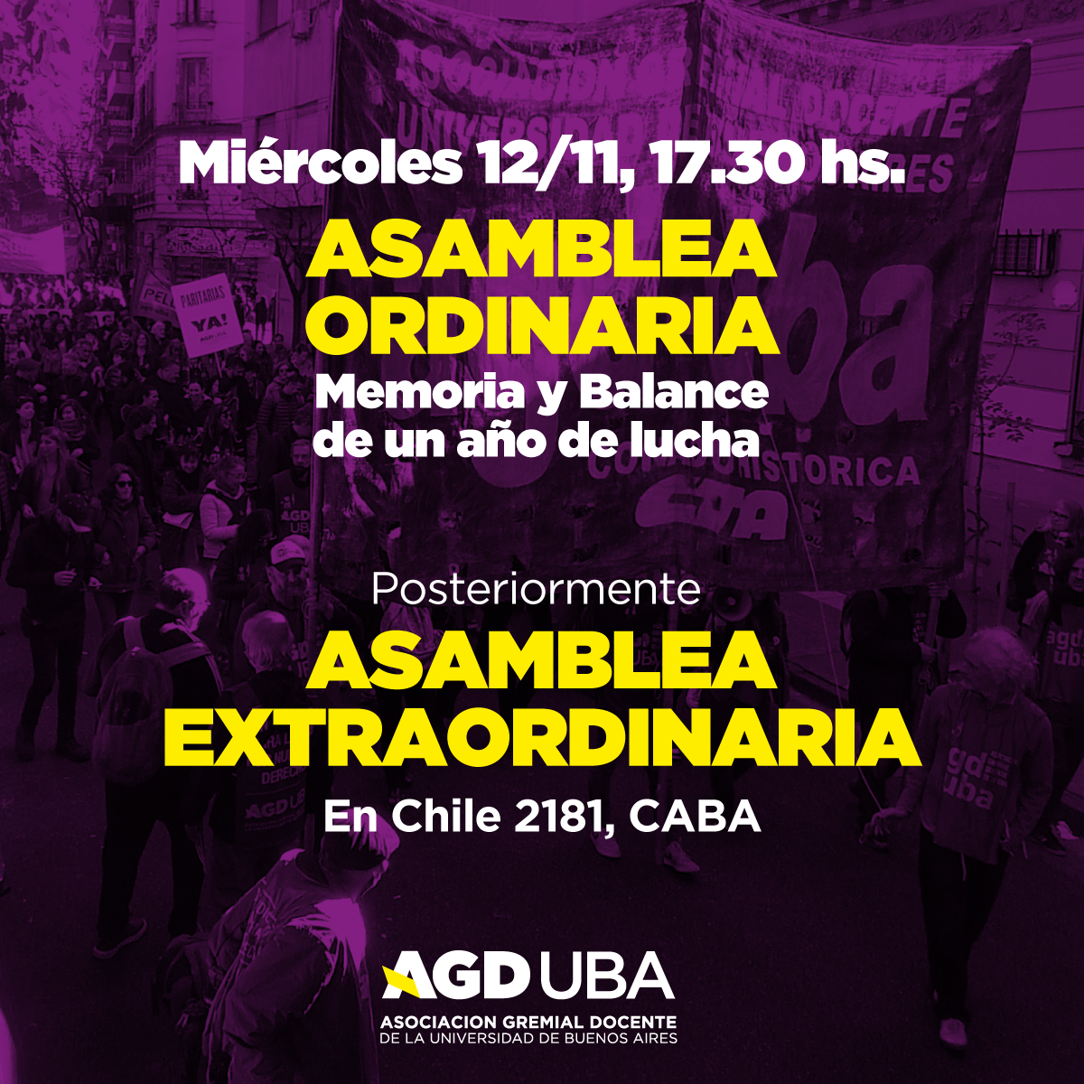 Miércoles 12/11, 17.30 hs. Asamblea ordinaria